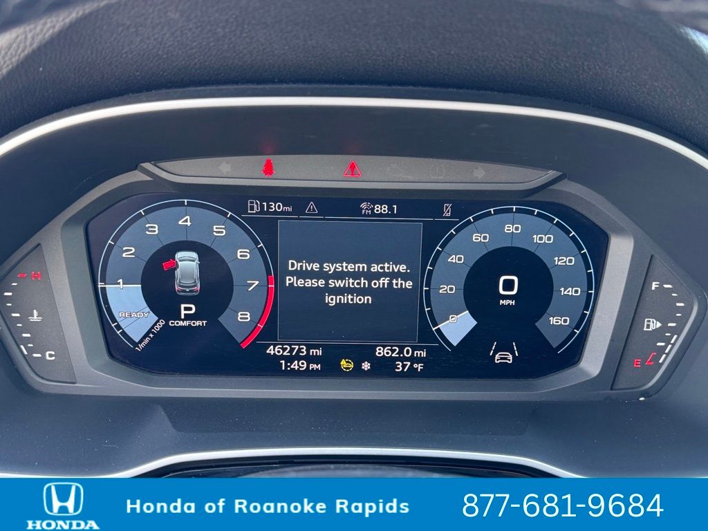 10 Speakers, 3.53 Axle Ratio, 4-Wheel Disc Brakes, ABS brakes, Air Conditioning, Alloy wheels, AM/FM radio, Audi smartphone interface (Apple CarPlay/Android Auto), Auto High-beam Headlights, Automatic temperature control, Brake assist, Bumpers: body-color, Delay-off headlights, Driver door bin, Driver vanity mirror, Dual front impact airbags, Dual front side impact airbags, Electronic Stability Control, Emergency communication system: Audi connect CARE, Exterior Parking Camera Rear, Four wheel independent suspension, Front anti-roll bar, Front Bucket Seats, Front Center Armrest, Front dual zone A/C, Front fog lights, Front reading lights, Fully automatic headlights, Heated door mirrors, Heated Front Bucket Seats, Heated front seats, Illuminated entry, Knee airbag, Leather Seating Surfaces, Leather Shift Knob, Leather steering wheel, Low tire pressure warning, Occupant sensing airbag, Outside temperature display, Overhead airbag, Overhead console, Panic alarm, Passenger door bin, Passenger vanity mirror, Power door mirrors, Power driver seat, Power Liftgate, Power moonroof: Panoramic, Power passenger seat, Power steering, Power windows, Radio data system, Radio: Audi Sound System, Rain sensing wipers, Rear air conditioning, Rear anti-roll bar, Rear fog lights, Rear reading lights, Rear seat center armrest, Rear window defroster, Rear window wiper, Remote keyless entry, Speed control, Speed-sensing steering, Split folding rear seat, Spoiler, Steering wheel mounted audio controls, Tachometer, Telescoping steering wheel, Tilt steering wheel, Traction control, Trip computer, Turn signal indicator mirrors, Variably intermittent wipers, Wheels: 18" 5-V-Spoke-S Design.