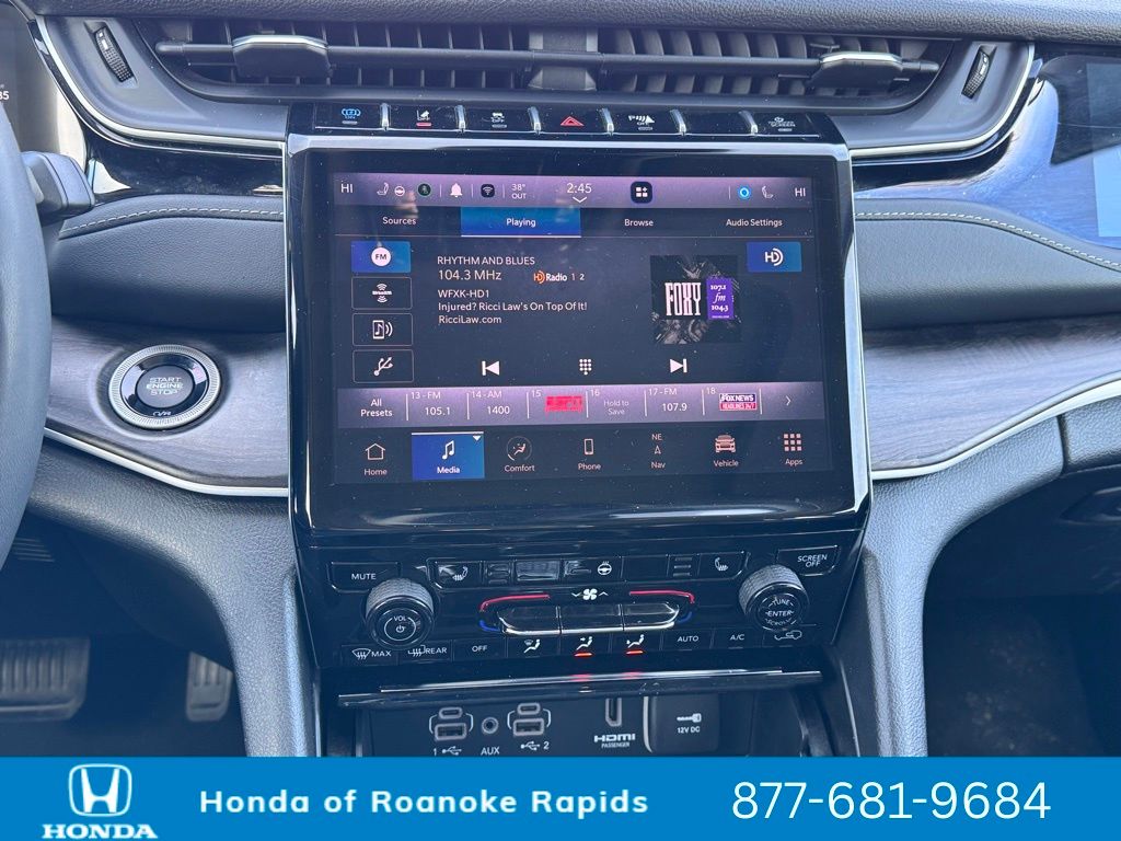 2.0L I4 DOHC, 4WD, 10 Speakers, 3.70 Rear Axle Ratio, 4-Wheel Disc Brakes, ABS brakes, Air Conditioning, Alloy wheels, AM/FM radio: SiriusXM with 360L, Anti-whiplash front head restraints, Audio memory, Auto High-beam Headlights, Automatic temperature control, Brake assist, Bumpers: body-color, Capri Leatherette Seats, Compass, Delay-off headlights, Driver door bin, Driver vanity mirror, Dual front impact airbags, Dual front side impact airbags, Electronic Stability Control, Four wheel independent suspension, Front anti-roll bar, Front Bucket Seats, Front Center Armrest w/Storage, Front dual zone A/C, Front fog lights, Front License Plate Bracket, Front reading lights, Fully automatic headlights, Garage door transmitter, Heated door mirrors, Heated front seats, Heated rear seats, Heated steering wheel, Heavy Duty Suspension, Illuminated entry, Knee airbag, Low tire pressure warning, Memory seat, Navigation System, Occupant sensing airbag, Outside temperature display, Overhead airbag, Overhead console, Panic alarm, ParkView Rear Back-Up Camera, Passenger door bin, Passenger vanity mirror, Power door mirrors, Power driver seat, Power Liftgate, Power moonroof, Power passenger seat, Power steering, Power windows, Quick Order Package 27F, Radio data system, Radio: Uconnect 5 Nav w/10.1" Display, Rear anti-roll bar, Rear reading lights, Rear window defroster, Rear window wiper, Remote keyless entry, Security system, Speed control, Speed-Sensitive Wipers, Split folding rear seat, Spoiler, Steering wheel mounted audio controls, Tachometer, Telescoping steering wheel, Tilt steering wheel, Traction control, Trip computer, Turn signal indicator mirrors, Variably intermittent wipers, Voltmeter, Wheels: 18" x 8" Fully Painted Aluminum, 2.0L I4 DOHC, 4WD.